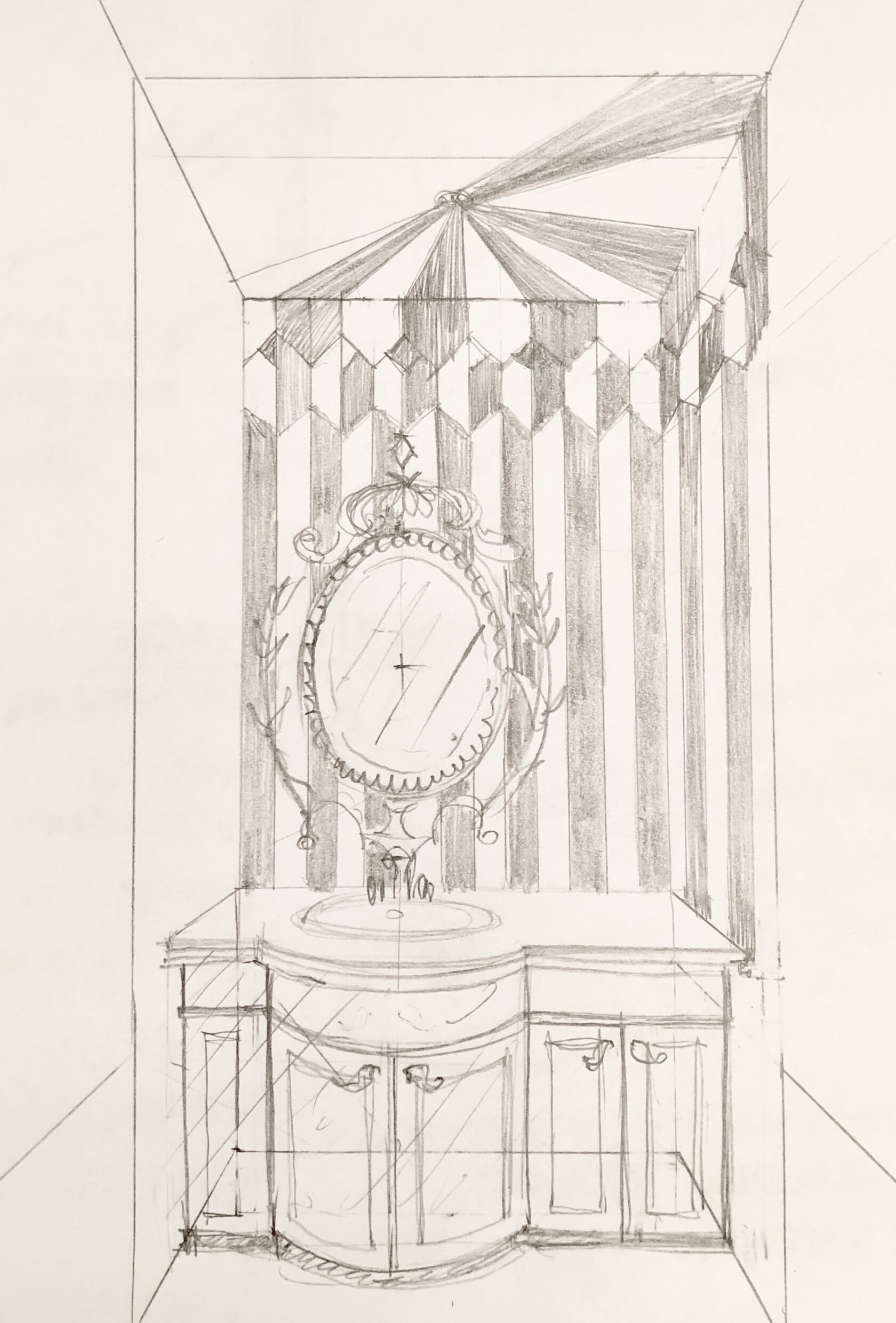 Для стен мы сначала планировали обои, но те, которые нравились, были с не подходящим сроком поставки. В итоге решили делать роспись в стиле шинуазри. Этот стиль лучше всего выражает идею тайного сада. Шинуазри является ответвлением рококо, это европейская стилизация древнего Востока, мифического, пропитанного мудростью и тайнами.