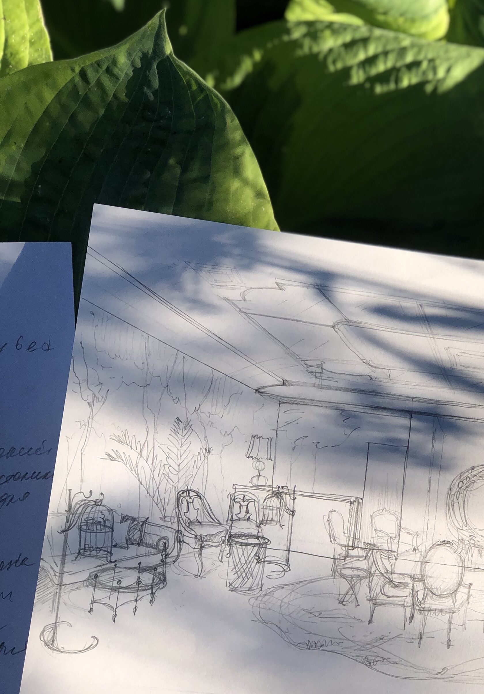 Первые образы будущего интерьера начали зарождаться с эскизов. Мы искали композицию, в которой каждая зона выглядела логично и уютно: где расположить кресло-гнездо, как подчеркнуть барную стойку, каким образом объединить разные сценарии — чаепитие, беседу, чтение. Интерьер должен «дышать» природными оттенками, мягким светом и изобилием деталей. Зеркала создают иллюзию разрыва пространства и выхода за его границы, множат растения.