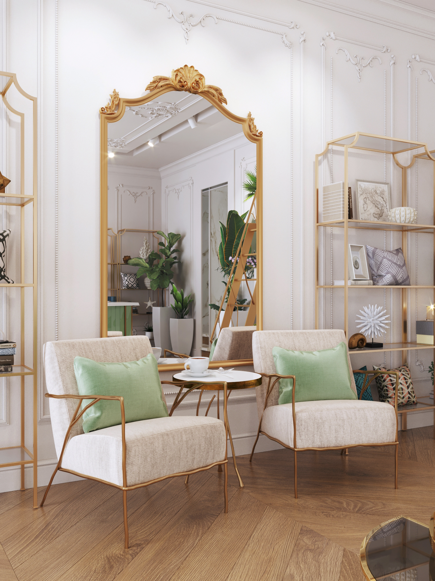 Мы выбрали нео-классику как основу — спокойную, уравновешенную, узнаваемую. Добавили лёгкие штрихи рококо и элементы эклектики. Так появился интерьер, который невозможно однозначно определить стилем, но можно почувствовать сердцем.